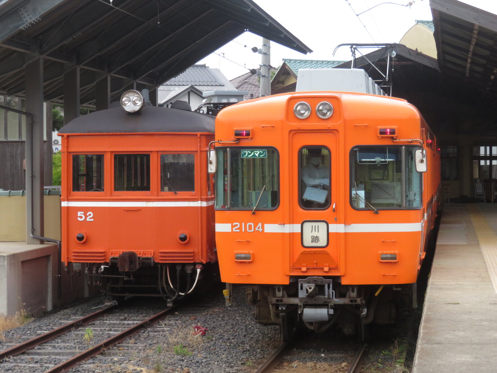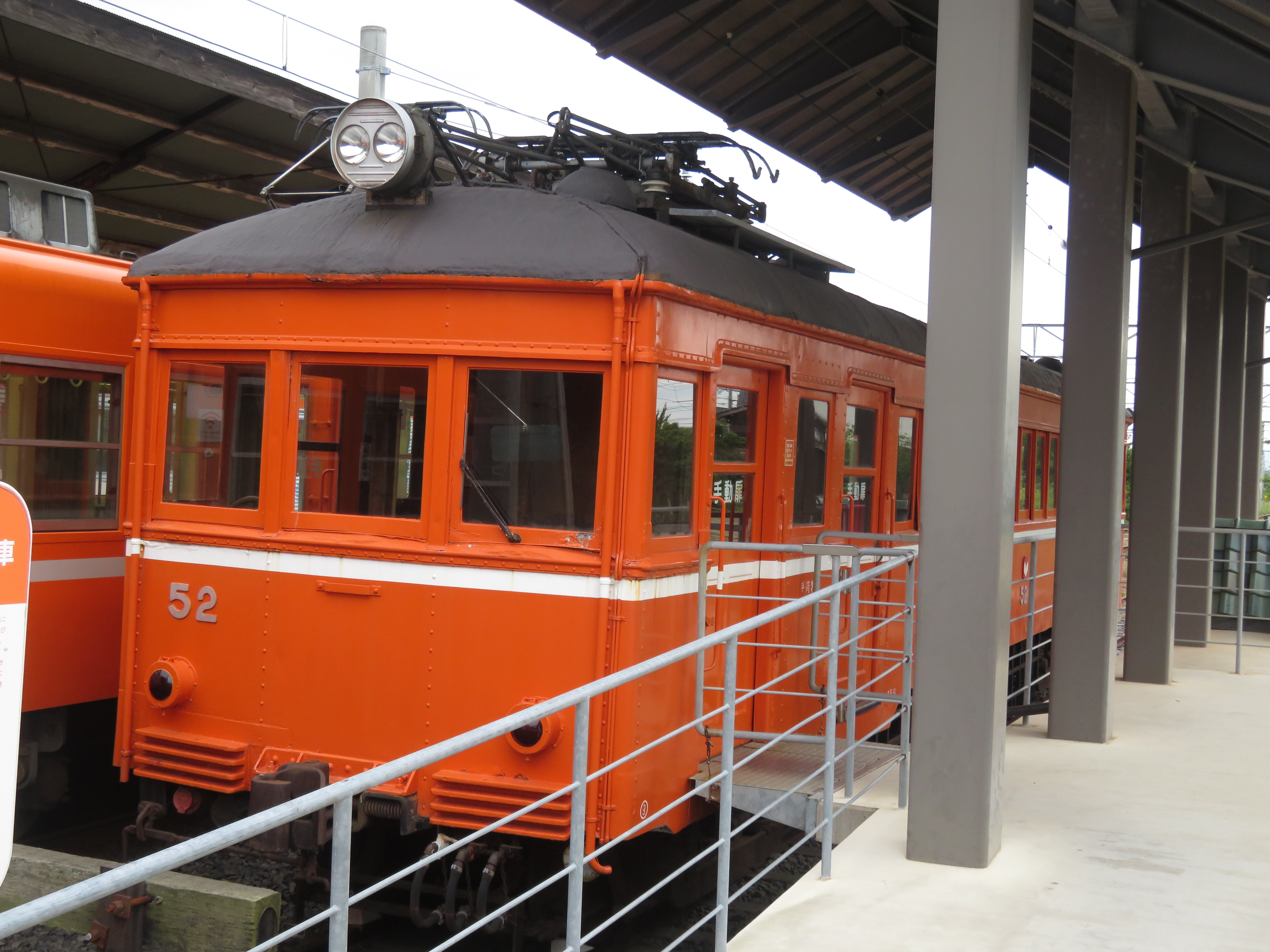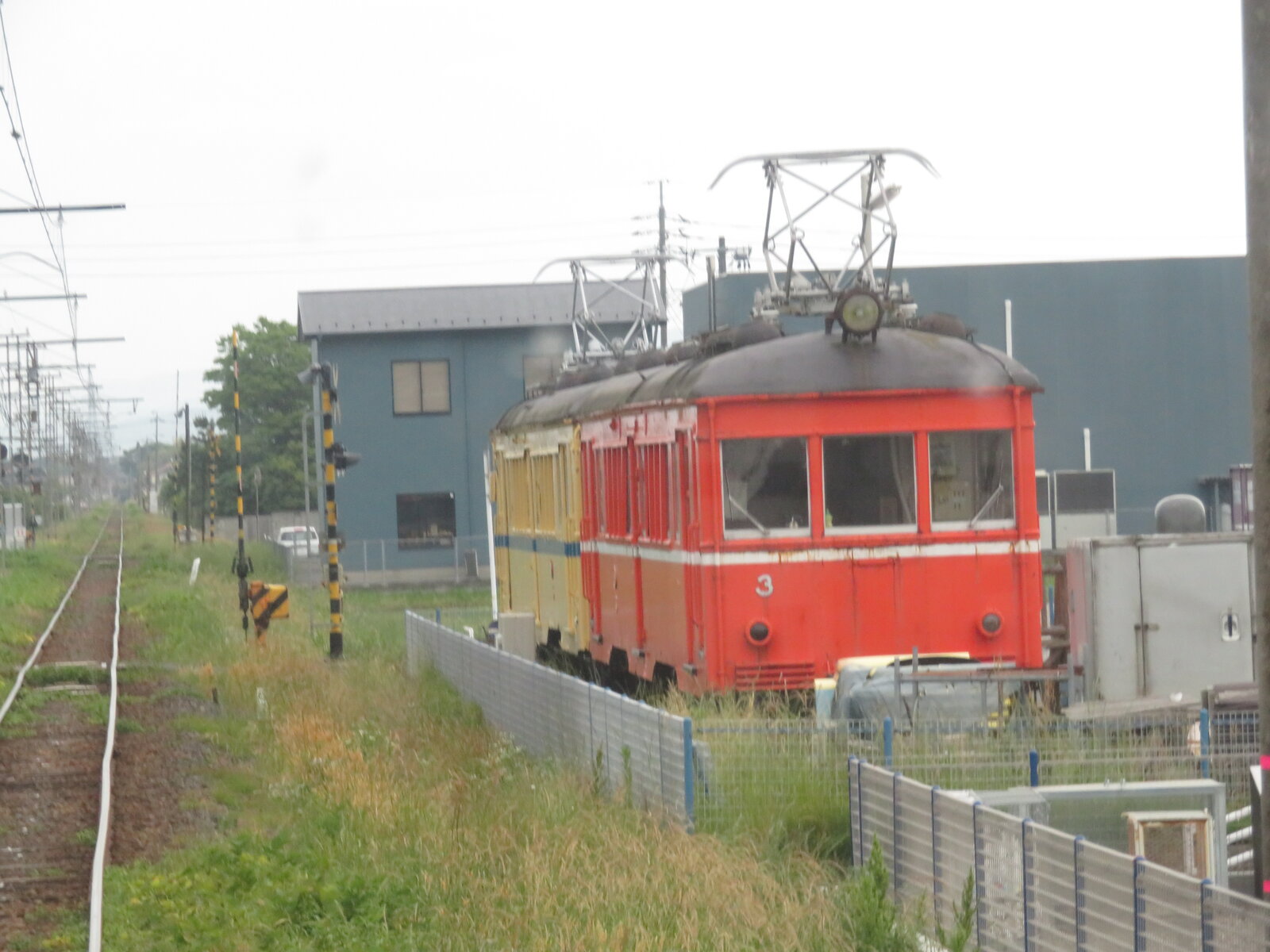 大社線高浜駅付近にある「さとがた保育園」の前にデハ3とデハ6の2両が保存されています。