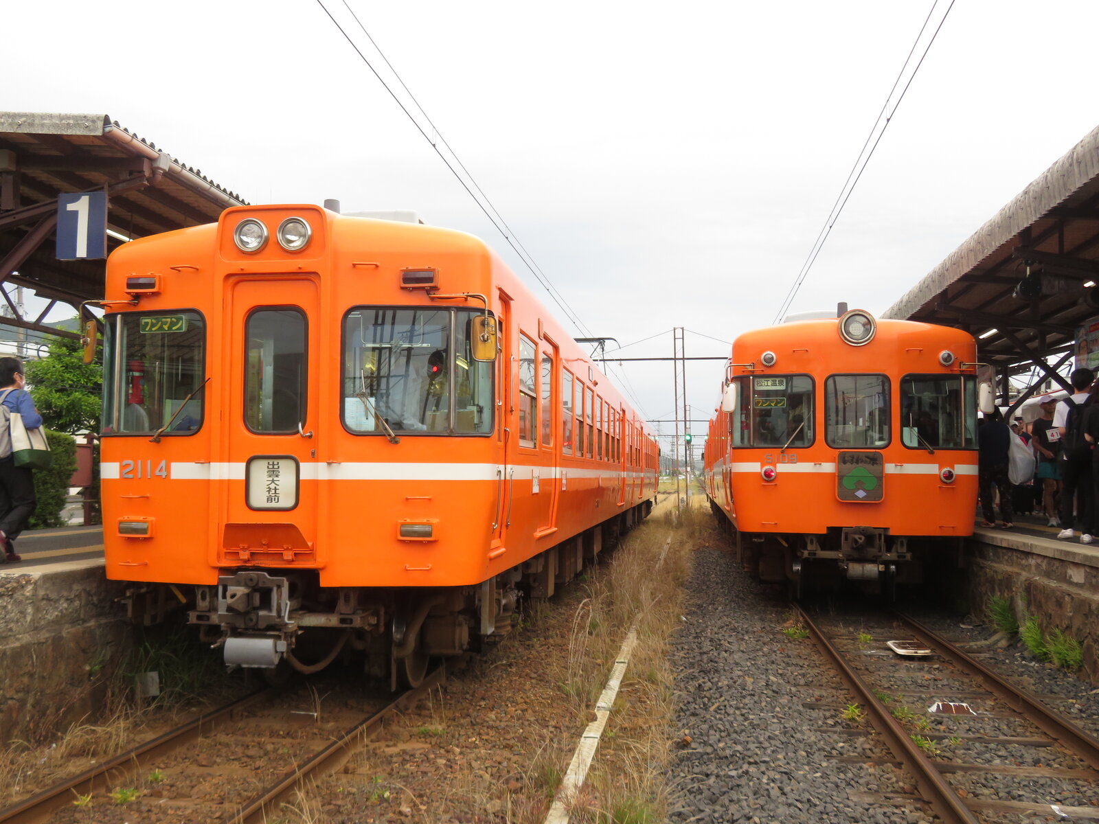 2100系は現在3編成が在籍。第4編成は2扉車です。