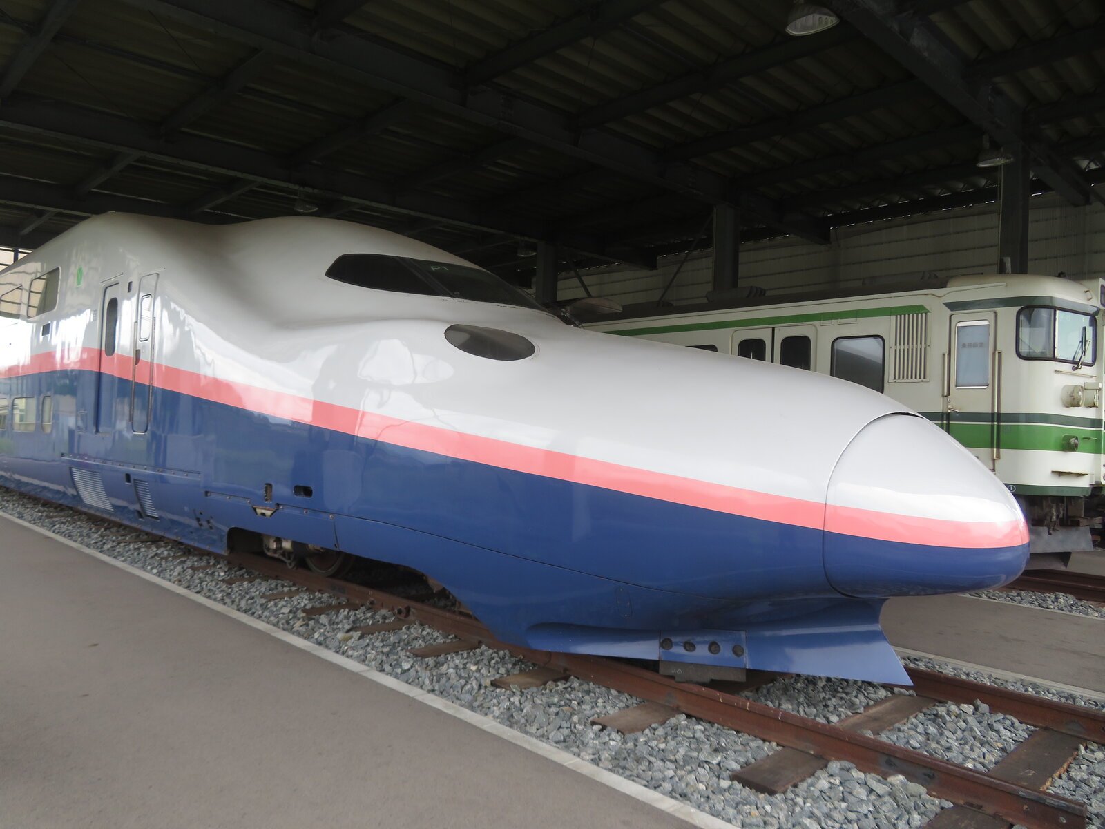 2024年09月30日 新津鉄道資料館⑥ E4新幹線です。P1編成の8号車E444-1が保存されています。正面からみると、もうビルですね。2021年まで運用されました。2階建て新幹線が無くなってしまったのは少し残念ですね。ときが描かれたロゴは人気でしたね。新幹線確認車GA-100も保存されています。 「鉄道」カテゴリの最新記事 < 前の記事次の記事 > コメント コメントフォーム 名前 コメント 記事の評価 リセット リセット 顔 星 情報を記憶 コメントを投稿する