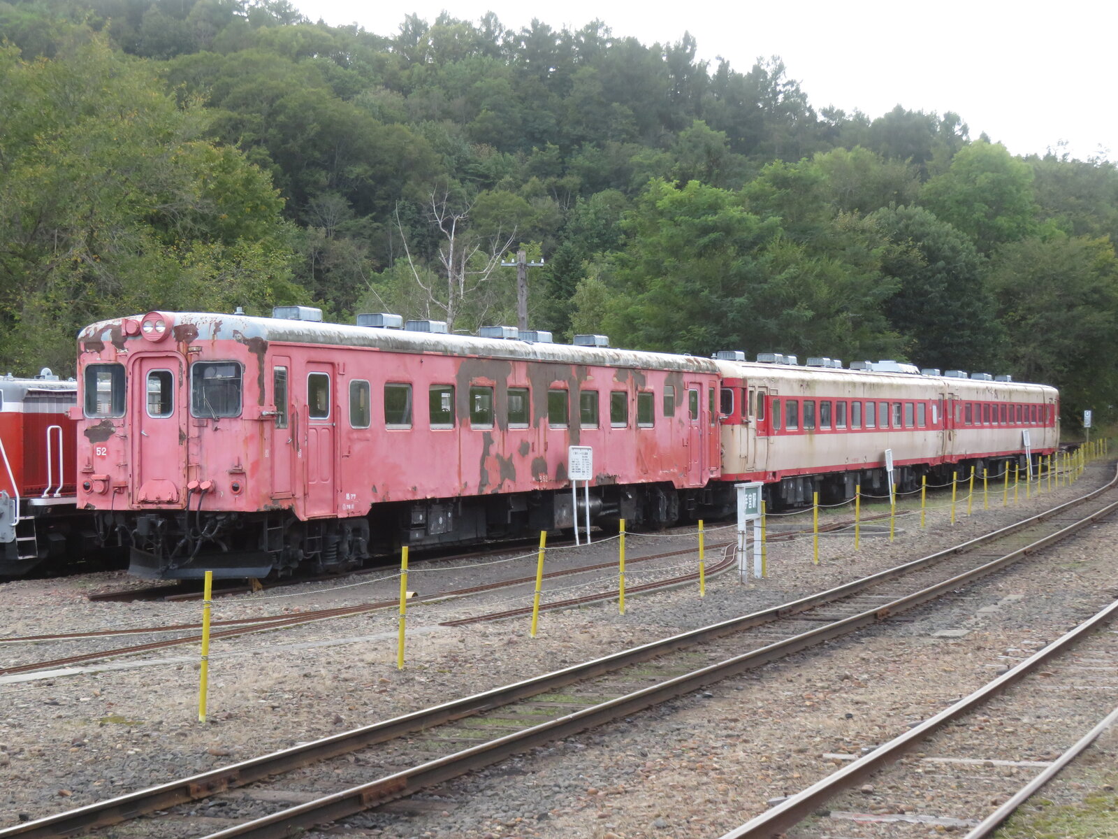 2025年11月15日 三笠鉄道村(幌内)③ キハ22 52。編成を組んで展示されているのがよいですね。かなり痛みがはげしいですが・・・。こういう編成を日常的に見れた時代が懐かしい・・。連結面です。キハ56 16。昭和36年製。キハ27 23。昭和37年製。道内を駆け巡った名車ですね。DE10 1702。セキ6657+ワム66172。ローカル貨物列車の雰囲気そのものです。キシ80 31。土日祝日だけ営業しています。オリジナル塗装では無いですが車内で食事できるのは貴重ですね。 「鉄道」カテゴリの最新記事 < 前の記事次の記事 > コメント コメントフォーム 名前 コメント 記事の評価 リセット リセット 顔 星 情報を記憶 コメントを投稿する
