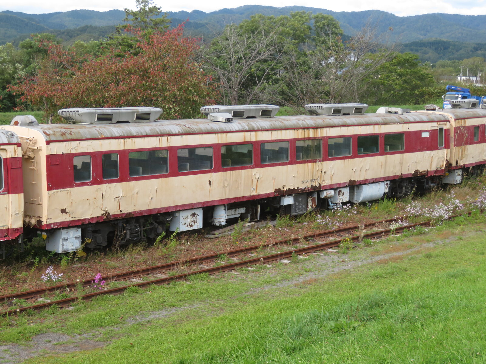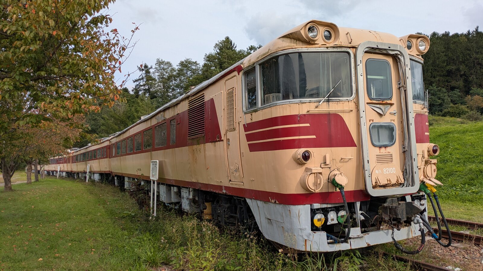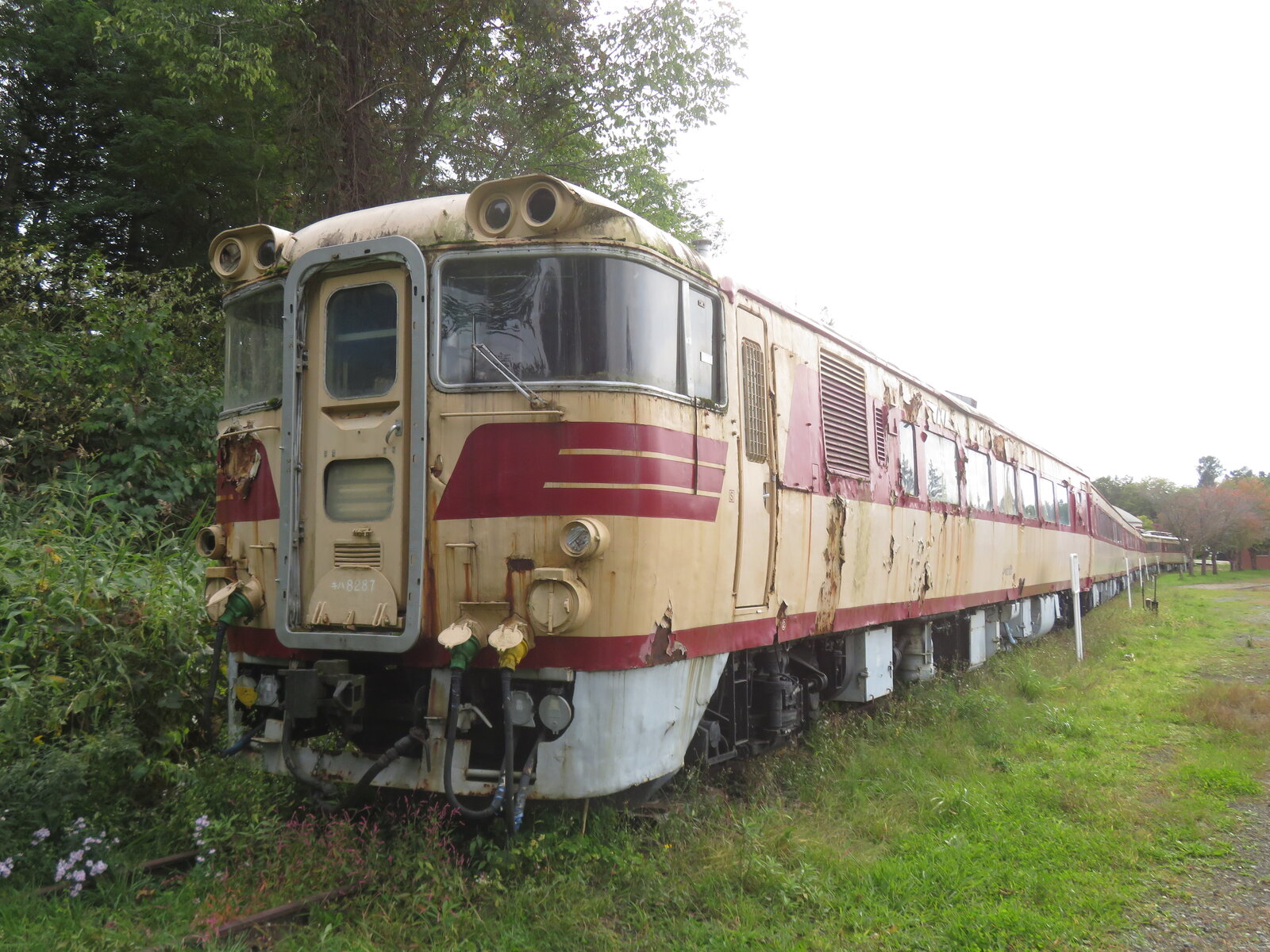 2025年11月17日 三笠鉄道村(三笠)⑤ 三笠ゾーン(クロフォード公園)に保存されているキハ82系。おおぞら編成として6両が保存展示されています。1989年に展示されてから時間は止まっていますね。編成で展示されているのが最高です。車両はやや傷んでますが四半世紀前に来た時と何も変わってないのがすごいです。キハ82 100。キハ80 150。昭和40年製。キシ80 27。キロ80 52。キハ80 145。キハ82 87。 「鉄道」カテゴリの最新記事 < 前の記事次の記事 > コメント コメントフォーム 名前 コメント 記事の評価 リセット リセット 顔 星 情報を記憶 コメントを投稿する