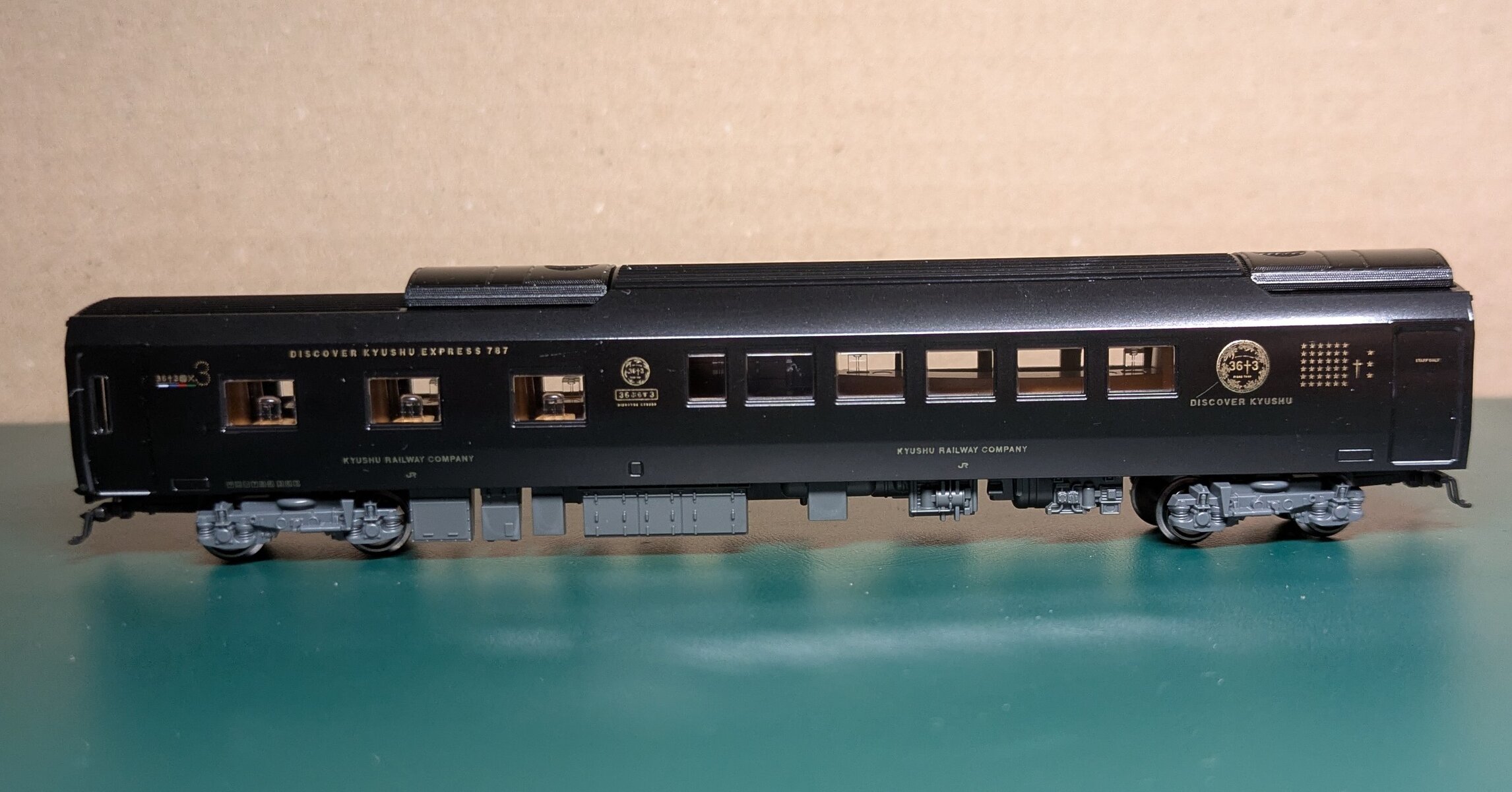 2025年12月21日 36ぷらす3 katoの36ぷらす3です。高いだけあって非常に良くできています。小さいロゴ等もう限界突破してる感があります。復活したビュッフェサロシ786です。テーブルランプなども点灯します。ビュッフェは昔つばめ号でよく利用しました。この黒光りするボディ中々です。しかしほこりが目立つので手入れが大変ですね。 「鉄道模型」カテゴリの最新記事 < 前の記事次の記事 > コメント コメントフォーム 名前 コメント 記事の評価 リセット リセット 顔 星 情報を記憶 コメントを投稿する